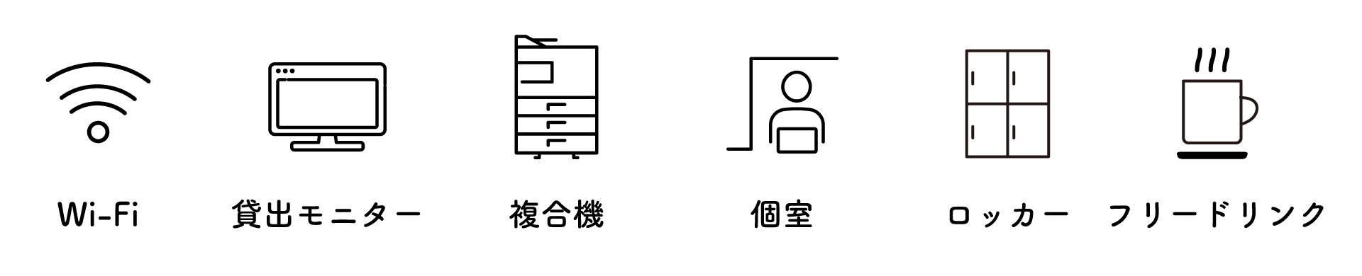 | コワーキングスペース(個人/法人) | 1名利用:¥12,000 2名利用:¥11,000/人 3名利用:¥10,000/人 4名利用:¥9,800/人 5名利用:¥9,500/人 | ・月額制 ・1社につき最大5名まで利用可能 ・法人でのご利用は、別途お見積作成いたします |